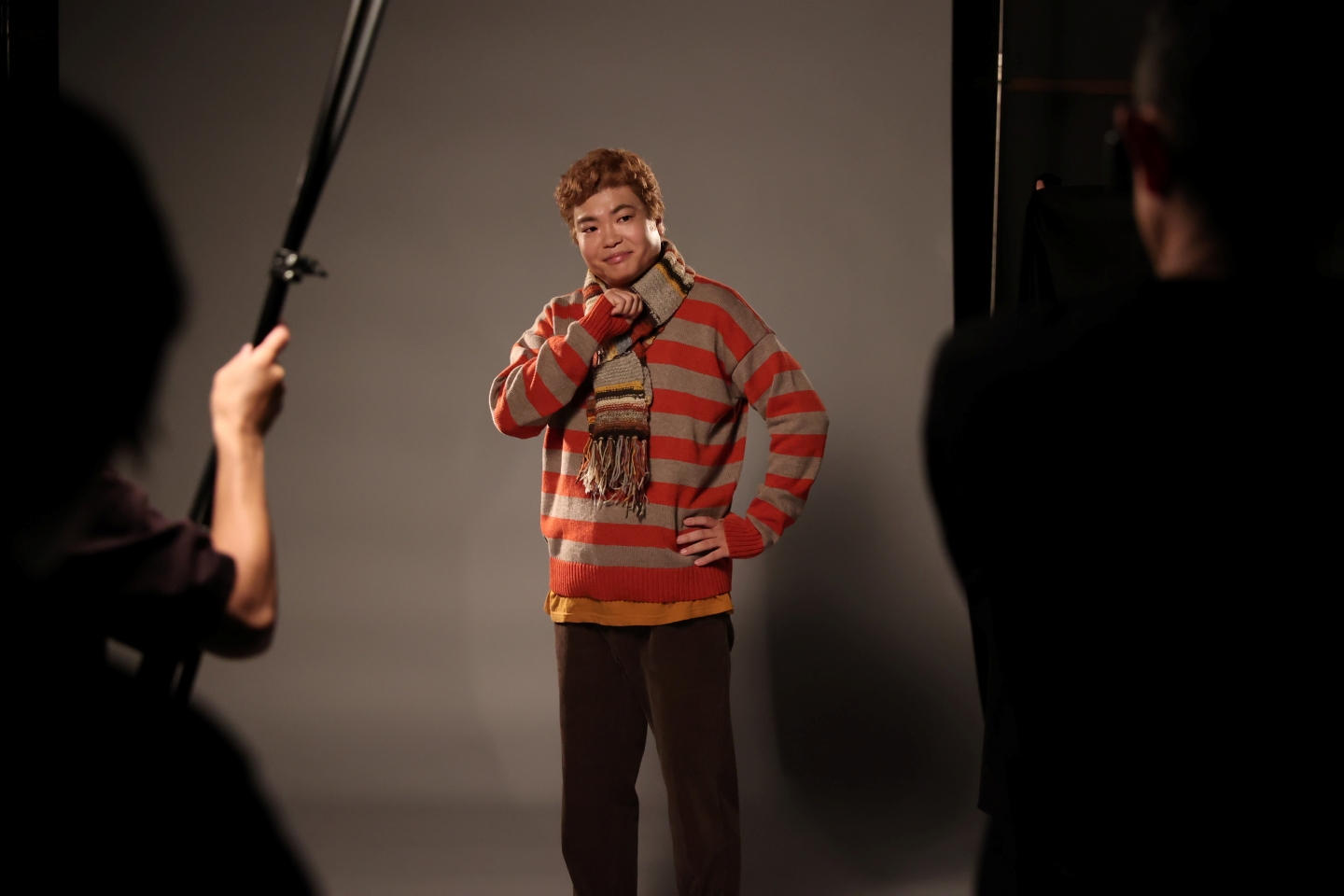 チェックのために撮影が止まると、一人で鏡に向かいポーズを試していて、ビジュアル撮影への熱い意気込みが伝わってきた。