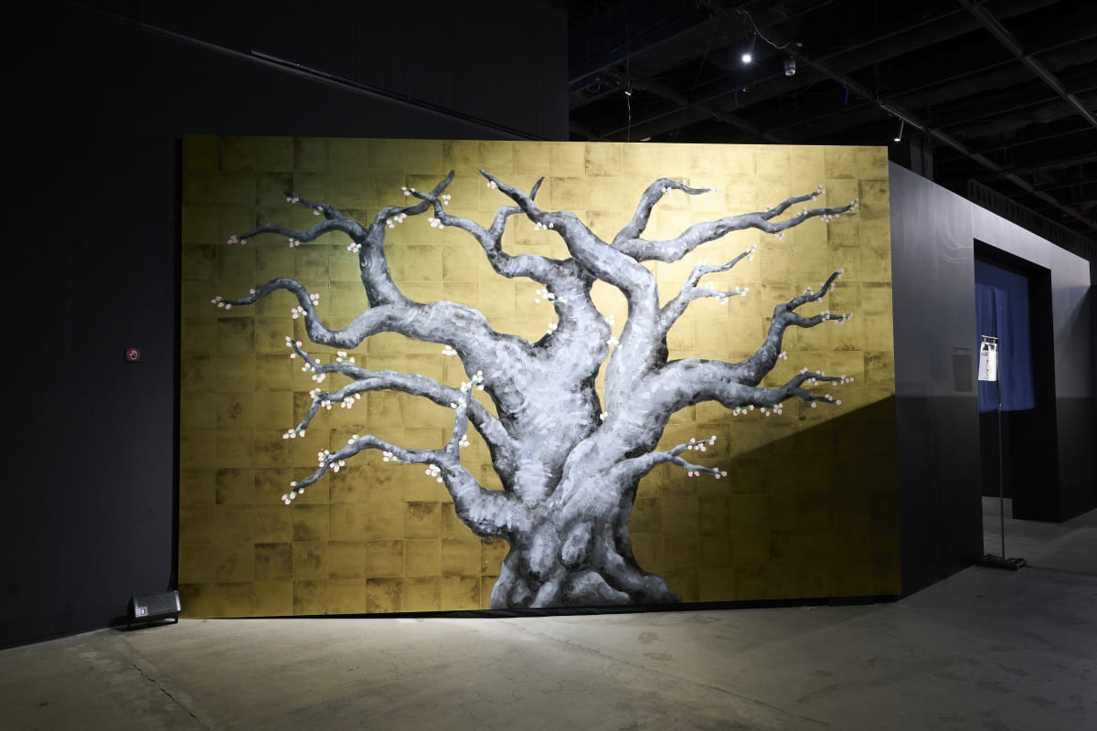 今回のイベントは、刀ミュの本公演1部ミュージカルパートに特化した内容で、これまでの歩みと名場面を体感できる空間となっている。会場に入ると、まず1本の桜の木が来場者を迎えてくれる。