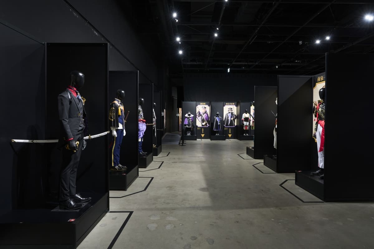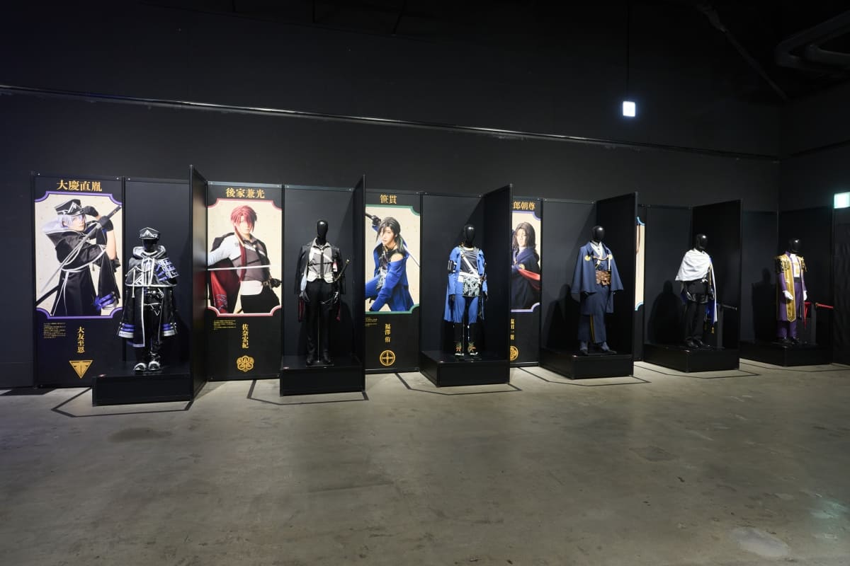 次のエリアでは、2015年のトライアル公演から現在までの刀ミュの物語を、十年の軌跡として振り返る年表形式の展示が行われている。続く刀剣男士の戦闘ver.衣裳の展示は、前期・後期日程で内容が入れ替わるとのこと。終了した前期日程では「歌合 乱舞狂乱 2019」以降の公演で初登場となった25振りが展示されていた。11月14日(金)からの後期日程では「トライアル公演」から「葵咲本紀」までの公演で登場した24振りの戦闘ver.衣裳が並ぶ。