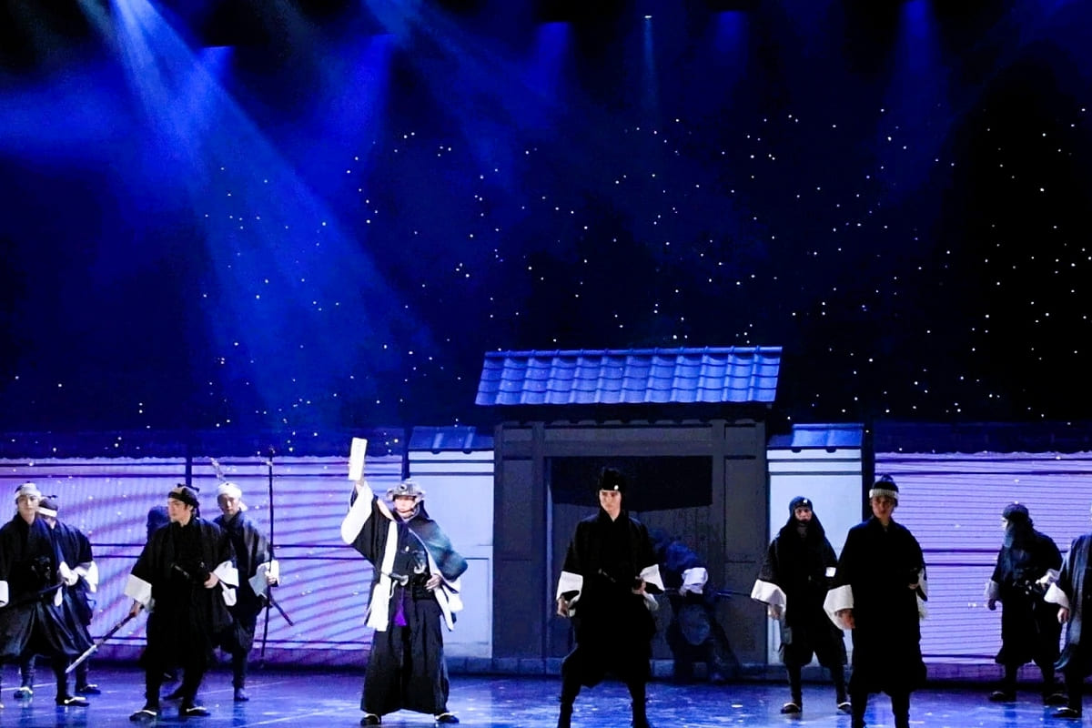 吉良邸への討入りでは、上川ら演じる赤穂浪士が吉良邸へなだれ込み、両陣営が乱れ斬り合う大迫力と疾走感のある殺陣が、取材会でも語られたLED背景によるアップテンポの転換と相まって披露され、ベテランキャストと若手キャストの迫真の演技が混じり合い、熱量があふれ出すステージとなっていた。