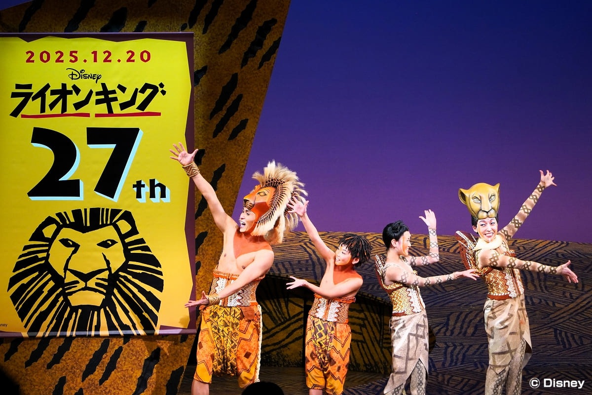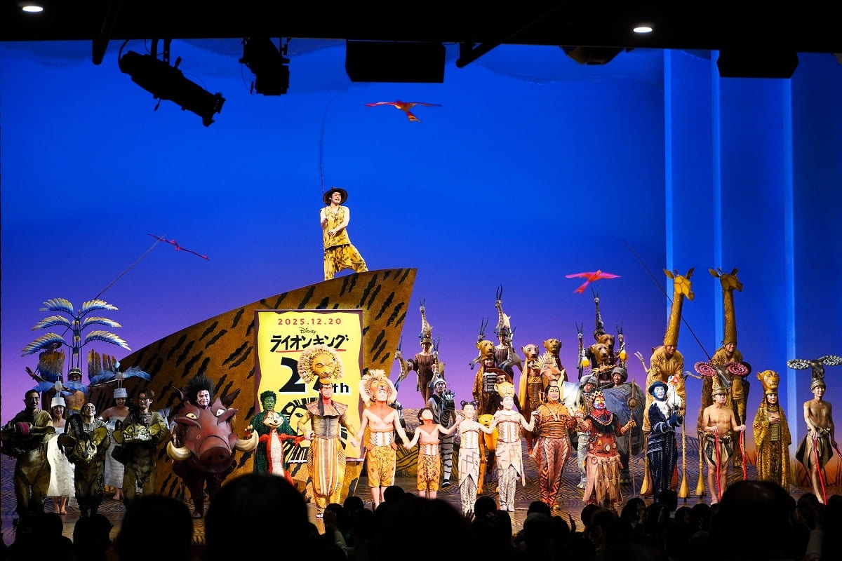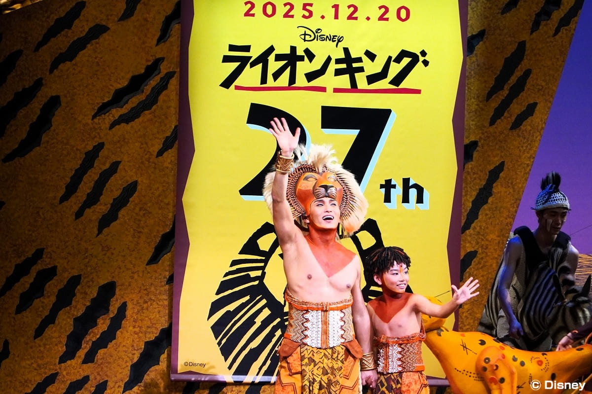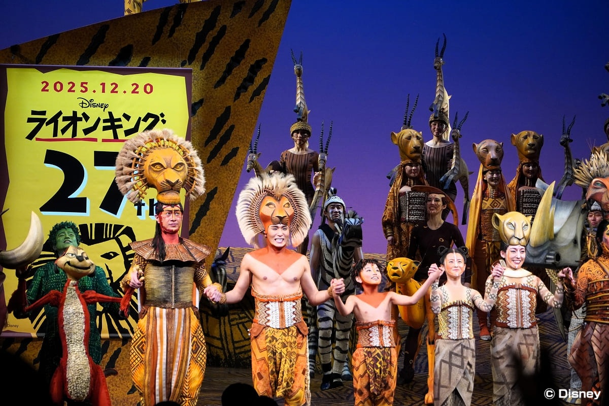 劇団四季のディズニーミュージカル『ライオンキング』が、本日2025年12月20日(土)に日本上演27周年を迎えた。1998年の開幕以来、無期限ロングランを継続し、日本演劇史上の最多上演記録を更新し続けている本作。東京・有明四季劇場では本編終了後に「27周年記念特別カーテンコール」が行われ、満員の観客と共に記念すべき節目を祝った。