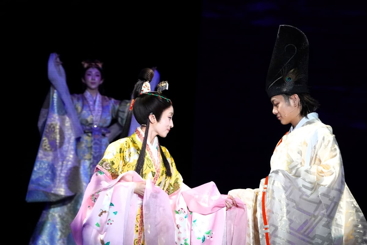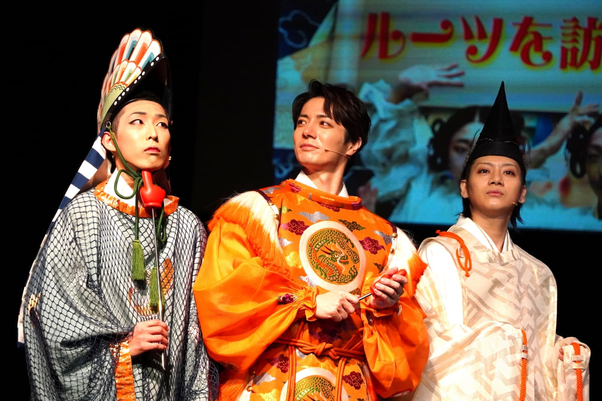 伊邪那岐命(いざなぎのみこと)役の和田琢磨は「年の瀬にふさわしい華やかな舞台です。自分が参加していないシーンも稽古場で見ていて非常に楽しかった」と語り、⽊花咲耶姫(このはなさくやひめ)役の梅⽥彩佳は「大切に、責任を持って頑張りたいです」と意気込んだ。
