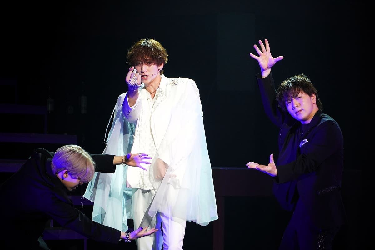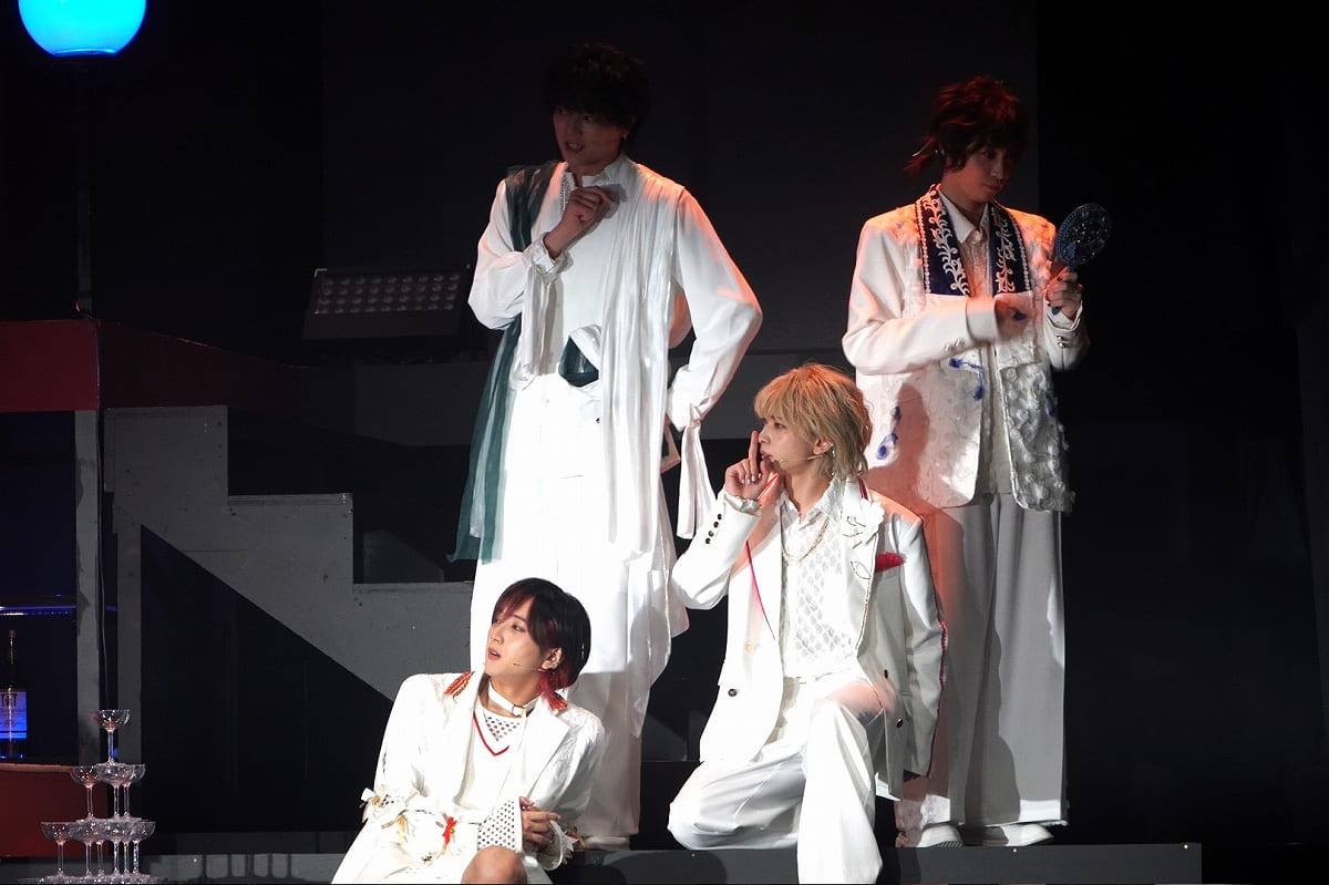 猫たちの天敵とも言える「犬」――ドッグマフィアが登場する本作は、賀屋壮也(かが屋)と末原拓馬が脚本、新キャストでもある植田圭輔が演出手掛け、ホストというきらびやかな世界の裏側に流れる人間(犬猫)ドラマと、歌とダンスで華やかに彩るショーを展開。初日前に先駆けて行われたゲネプロの模様をレポートする。