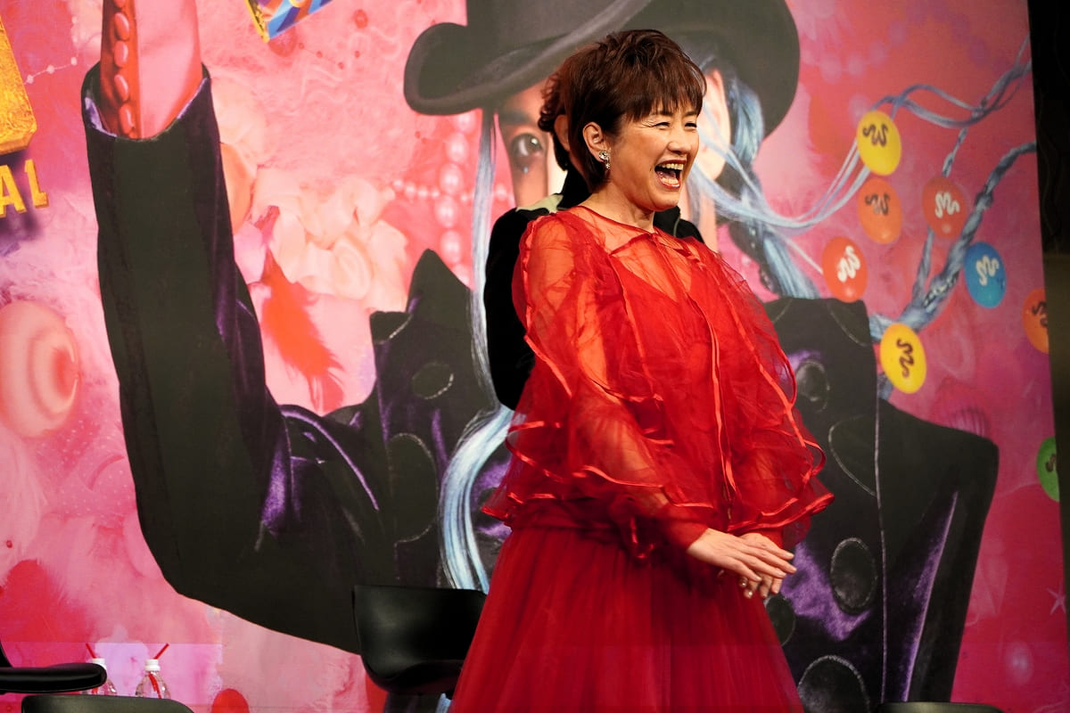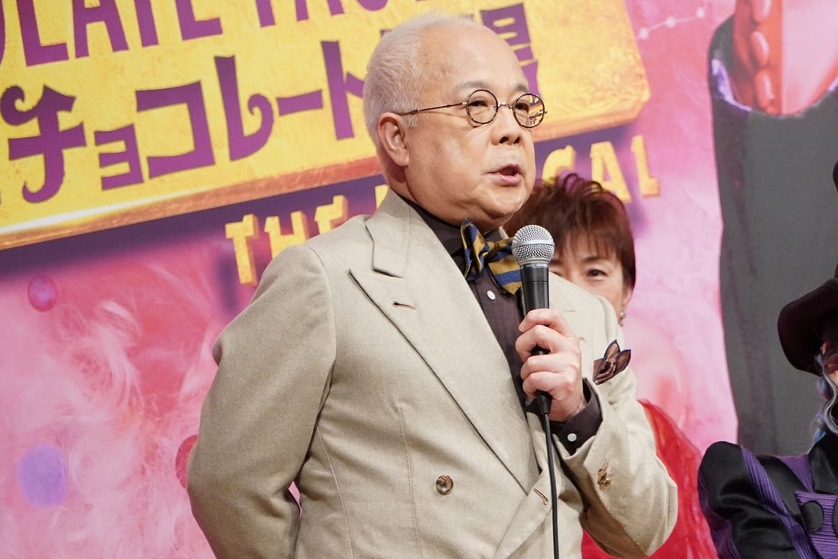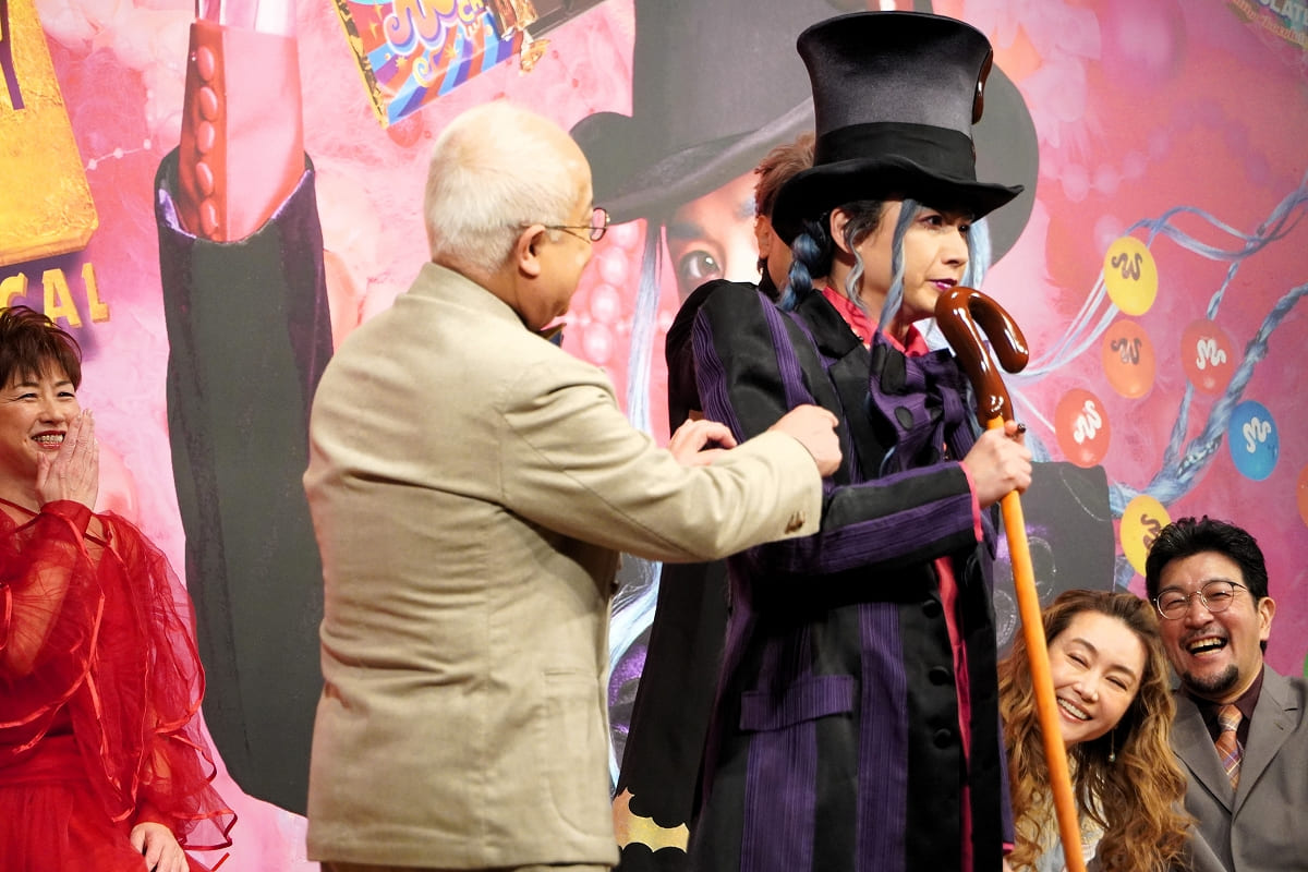 堂本は、挨拶のため立ち上がると、マイクではなく手にしていたウォンカのステッキを口元に運ぶ。涼しい顔で小ボケをかましたまま進めようとする堂本に、すかさず隣のジョーじいちゃん役・小堺から「それマイクじゃないから!」とツッコミが入る。まるで漫才のような息の合ったやり取りに、3年ぶりのカンパニーの結束を感じた。