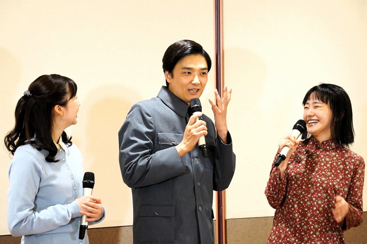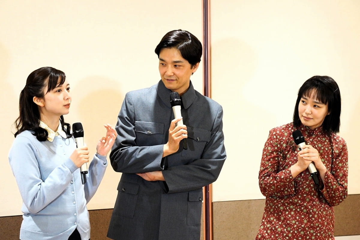 初日前に行われた取材会には、主人公・陸一心(ルーイーシン/松本勝男)を演じる井上芳雄、一心の妹・張玉花(ツァンユウホワ/あつ子)役の奈緒、そして一心の心を救う看護婦・江月梅江月梅(チアンユエメイ)役の上白石萌歌が登壇。魂を削るような壮絶な大作に挑む生々しい闘志と、それに反比例するかのように温かく結びついたカンパニーの絆を、たっぷりと語ってくれた。
