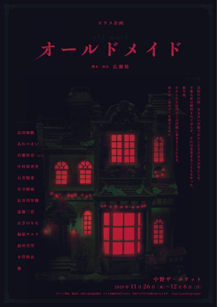 2020年11月26日~12月6日 わたしたちは再びこの洋館に集まる 高校生の時、ある古い洋館でわたしたちの友人が死亡した。 不審な死は解明されておらず、それ以来集まるこ... -